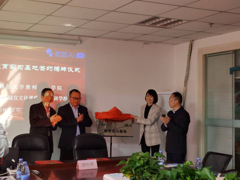 2020年11月7日上午,Beat365官方网站教育实习基地揭牌仪式在安庆经开区冠宜教育学校隆重举行。教师教育学院院长吴云助、教育技术学专业负责人韩建华,经开区教育局局长阮星星、高管王贵忠,冠宜教育学校校长喻红、教育技术学教研室全体教师、2020级新生等出席揭牌仪式。