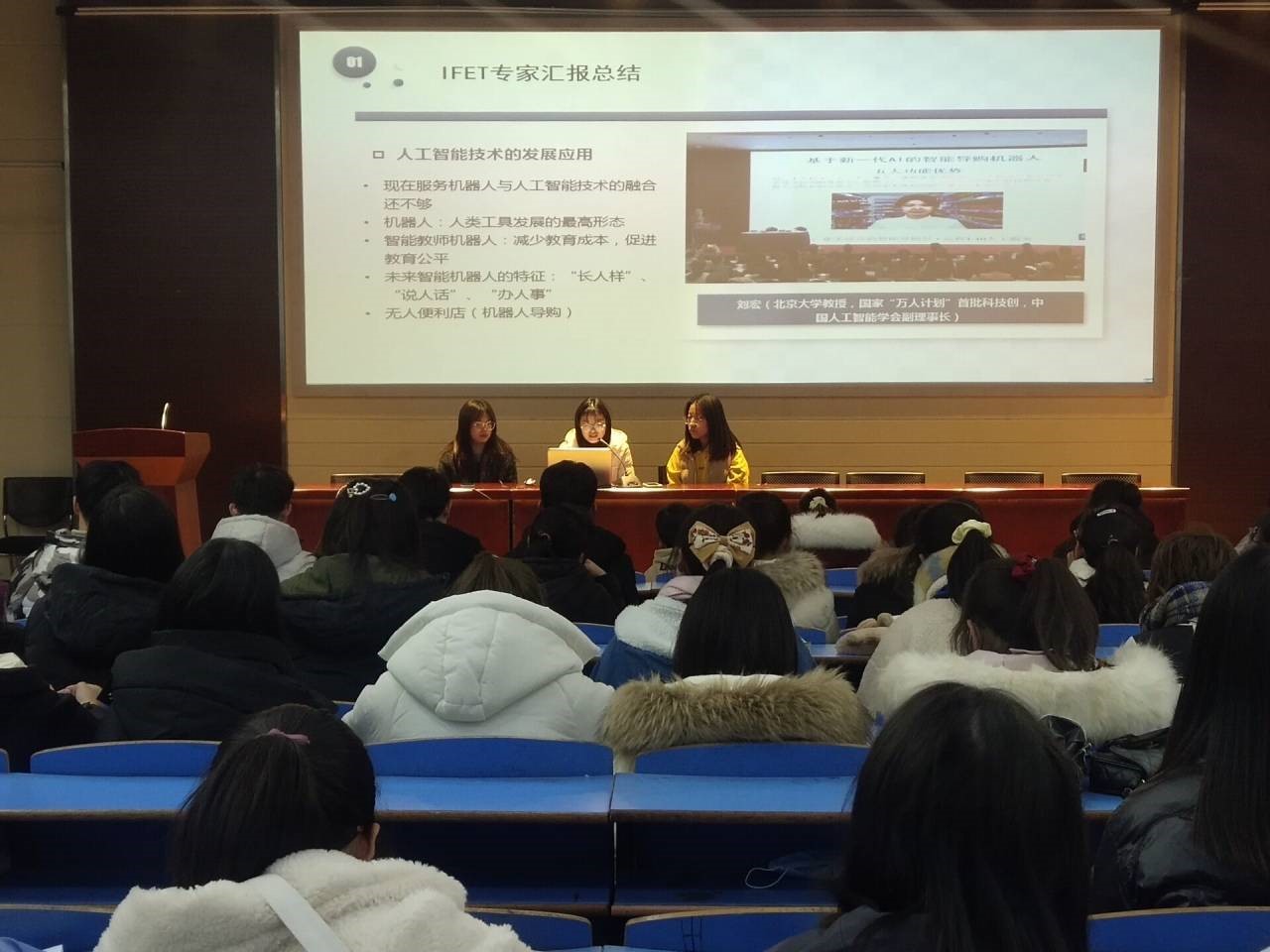 12月13日晚,教育技术学专业研究生和本科生在龙山校区D111室开展专业交流活动。2020级研究生丁宁、邢燕、姜丰做主旨发言,汇报了参加第十九届教育技术国际论坛的心得体会。活动由2019级本科生王丽主持。