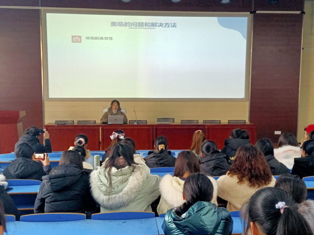 与此同时,为了发挥优秀学生的引领作用,培养学生树立创新创业意识和实践能力,参赛师生于12月25日在D111教室组织开展大赛经验交流活动。一等奖作品获得者唐演汇做主题发言,2019、2020级教育技术学专业学生全程参与。