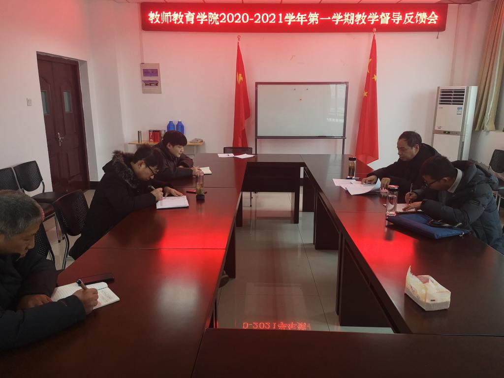 1月6日下午,Beat365官网召开2020-2021学年第一学期教学督导反馈会,校教学督导团督导员张启树、雒有谋出席会议并反馈意见。学院党委副书记许世平、团总支负责人方泽宇及教务科全体人员参加了会议。会议由许世平主持。