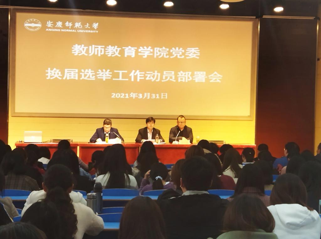 3月31日下午,教师教育学院召开党员大会,动员部署学院党委换届选举工作。学院党委书记陈志超、院长吴云助、党委副书记许世平及全体师生党员参加会议。会议由吴云助主持。