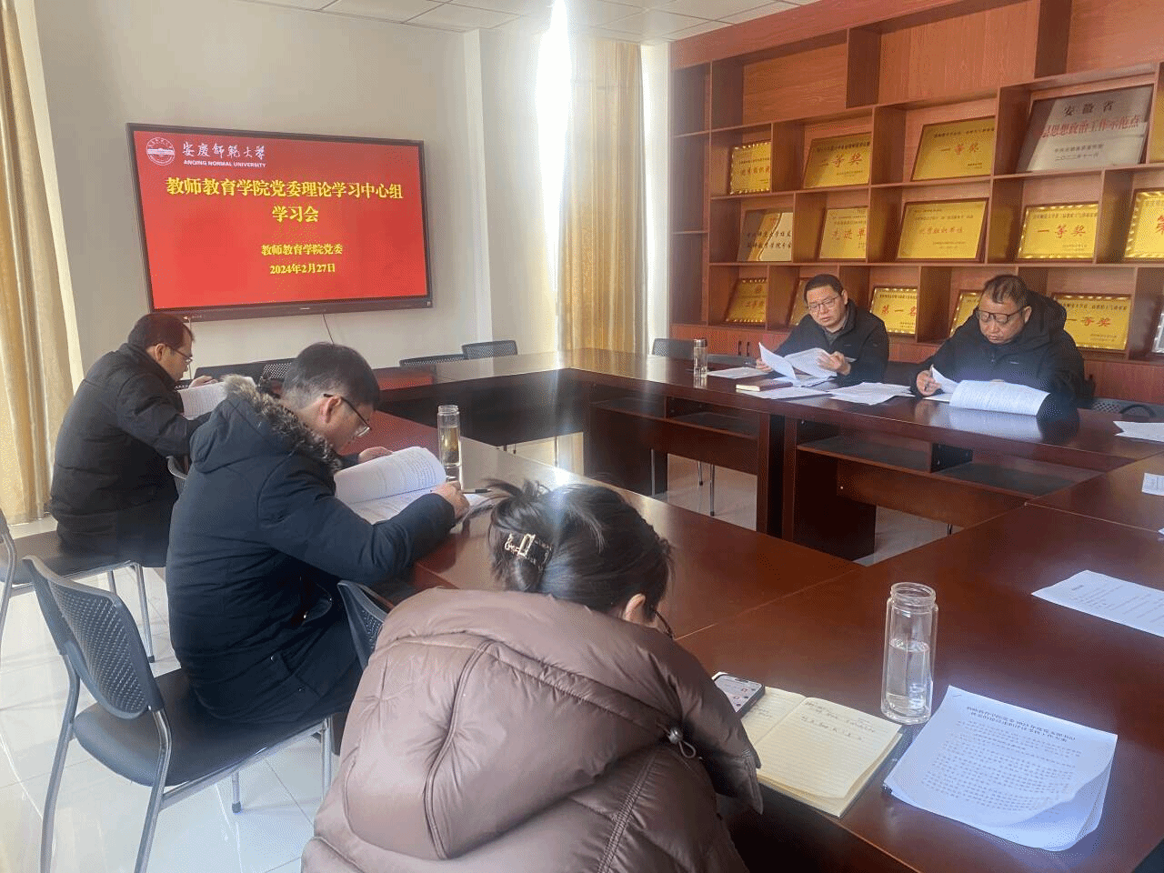 2月27日,教师教育学院党委理论学习中心组举行学习会。学院党委书记何孔蛟主持学习会。