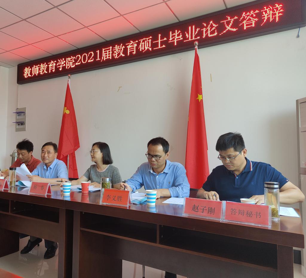 6月1日至2日,教师教育学院2021届教育硕士毕业论文答辩顺利举行。教师教育学院特邀安徽师范大学周兴国教授、辛治洋教授和合肥学院伍德勤教授等10名外校专家和基础教育专家以及本校专家组成四个答辩组。2021届小学教育、学前教育、心理健康教育、特殊教育的26名教育硕士毕业生及其导师参加了论文答辩。教师教育学院部分2020级在读硕士旁听了本次答辩。