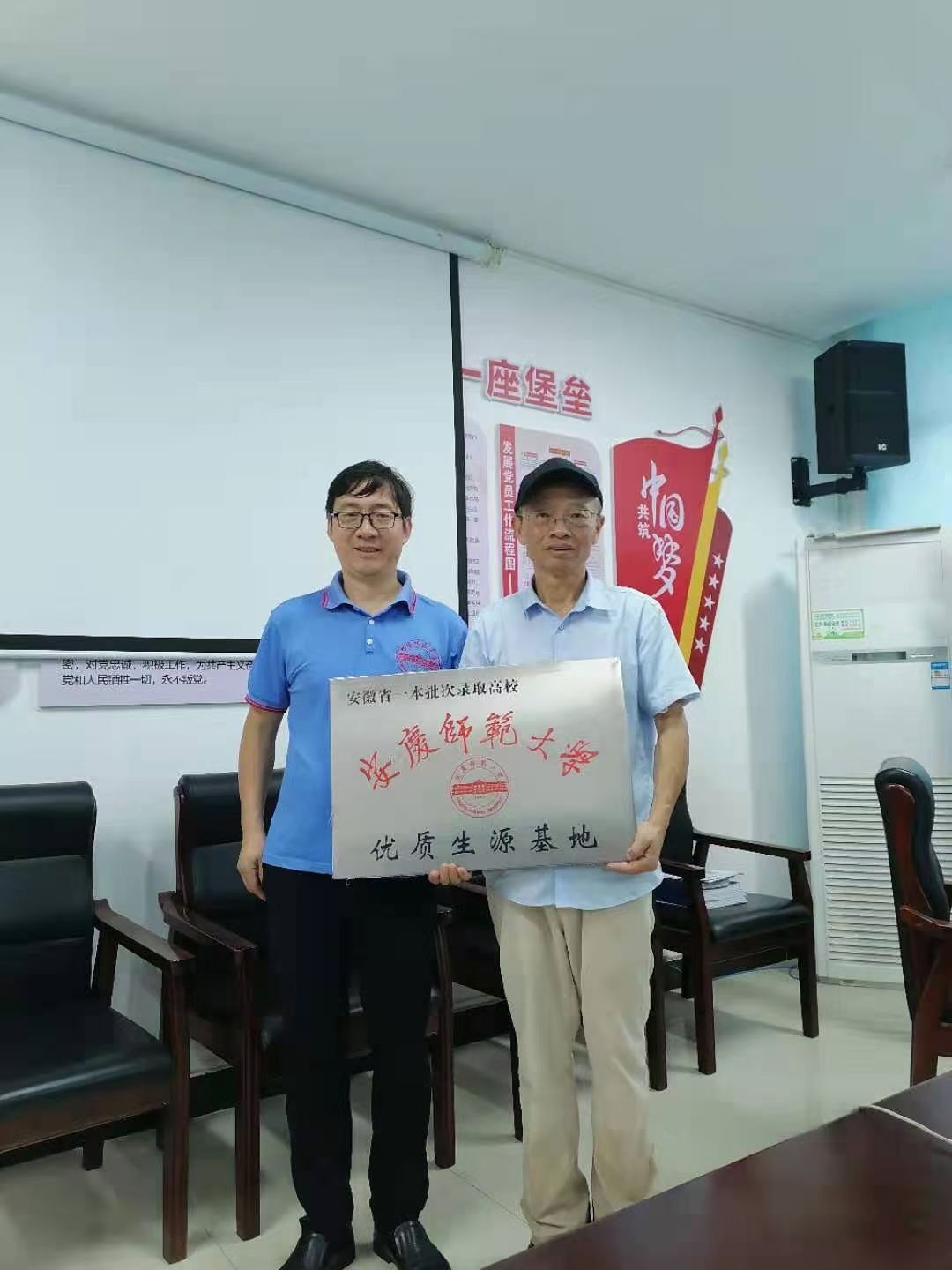 在歙县二中和屯溪一中,许世平一行与该校领导、老师进行了座谈,详细地介绍了我校今年的招生政策,并着重对Beat365官网定向培养全科型乡村小学教师招生政策进行了宣讲,欢迎该校高考学生积极报考我校。两校领导均表示会把我校招生的特殊政策向广大高考学生和家长进一步进行宣传。座谈会上,许世平还就我校优质生源基地建设情况进行了介绍,并代表Beat365官方网站同屯溪一中签订《Beat365官方网站优质生源基地合作协议书》,授予了“Beat365官方网站优质生源基地”牌匾。
