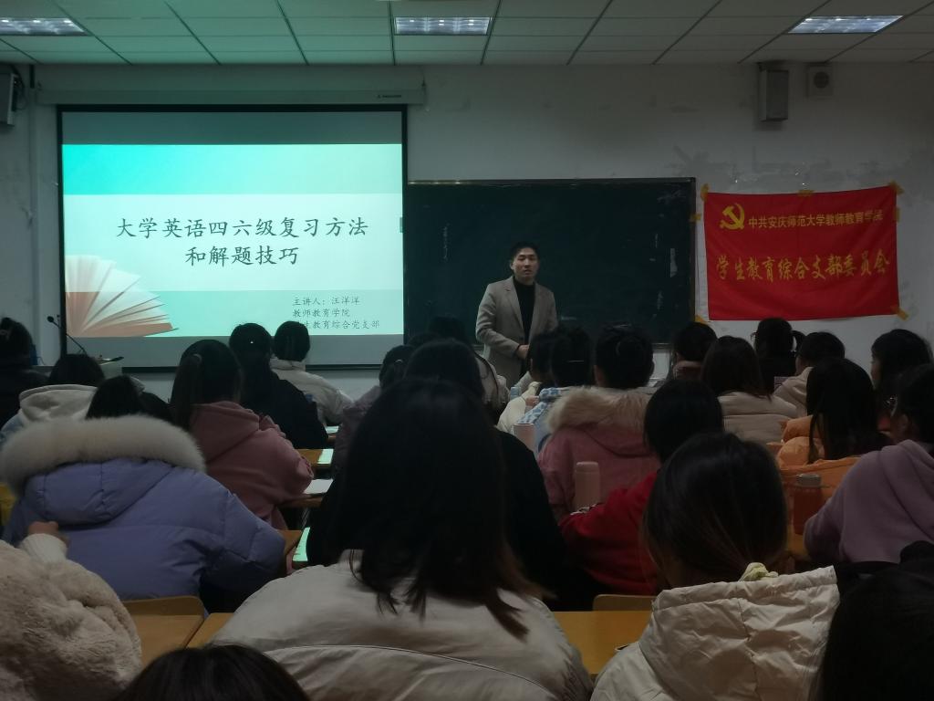 为提高同学们对英语学习兴趣,更好的应战即将到临的大学英语四六级考试,12月2日晚,Beat365官网开展英语四六级经验交流活动在J305进行。2020级学前教育、小学教育、应用心理学等专业学生积极参与了活动。活动由学生教育综合党支部书记汪洋洋老师主持。