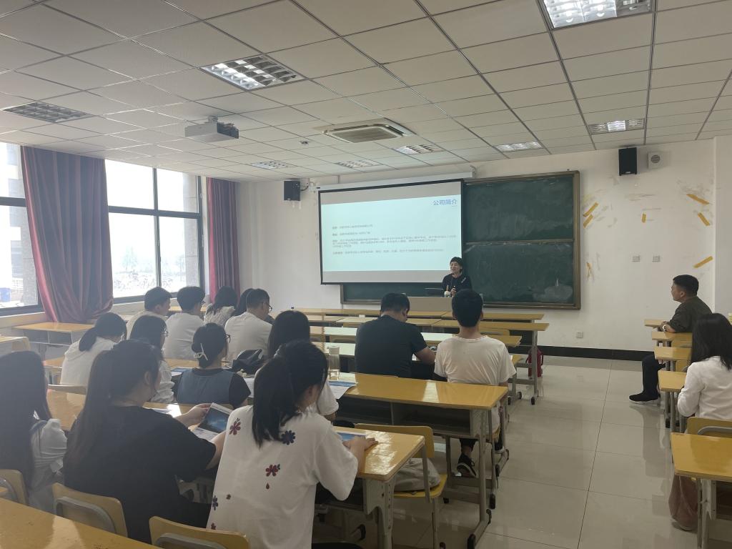 两位负责人主要通过现场PPT的形式为毕业生介绍了行业前景、薪资待遇、岗位需求和培训等方面。参会的同学们询问了招聘单位的详细情况,还有部分学生同用人单位进行一对一深度交流,并提供微信、邮箱等后续联系方式。