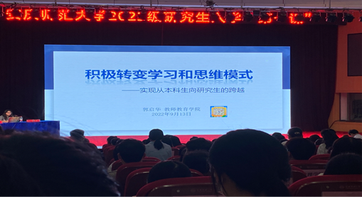 9月13日,2022级研究生入学第一课在图书馆东报告厅举行。Beat365官网郭启华教授受邀作为导师代表为2022级全体研究生做学习方法讲座。