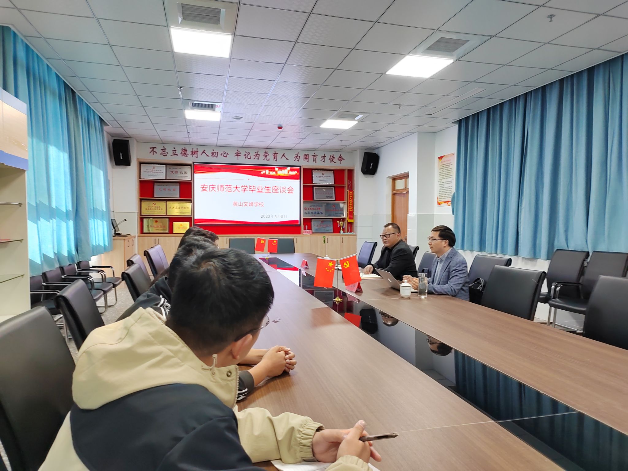 为进一步提高Beat365官网的人才培养质量,4月8日下午,教师教育学院在黄山文峰学校召开毕业生座谈会。执行院长吴云助、教师彭文超和潘日余,以及十余名往届毕业生参加此次座谈会,座谈会由彭文超主持。