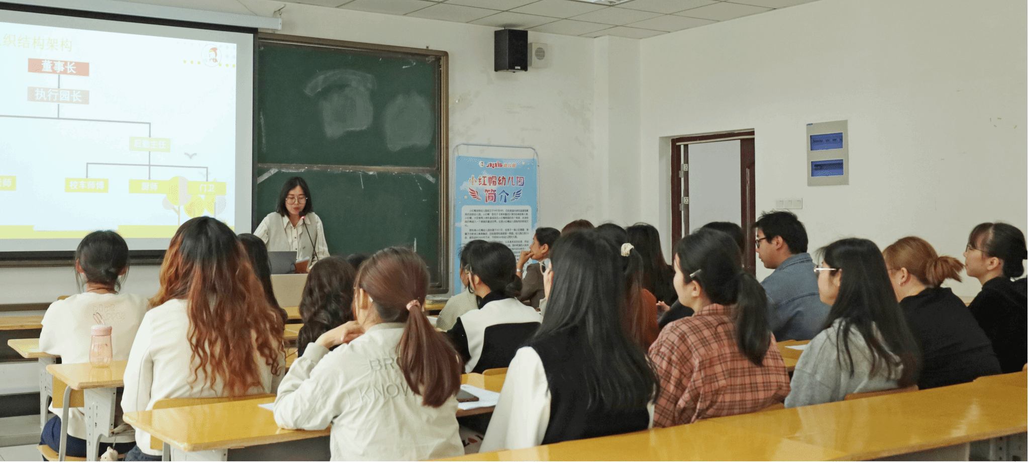 两家单位代表先后通过视频展示、PPT讲解、面对面交流的方式对企业基本情况、发展前景、岗位需求、员工福利等方面进行了详细介绍,并针对学生最关心的“薪资待遇”和“发展空间”等问题进一步讲解。招聘负责人王小菊说:“学院领导高度重视,学生们整体素质非常高,让我感受到了学前教育的新希望。”