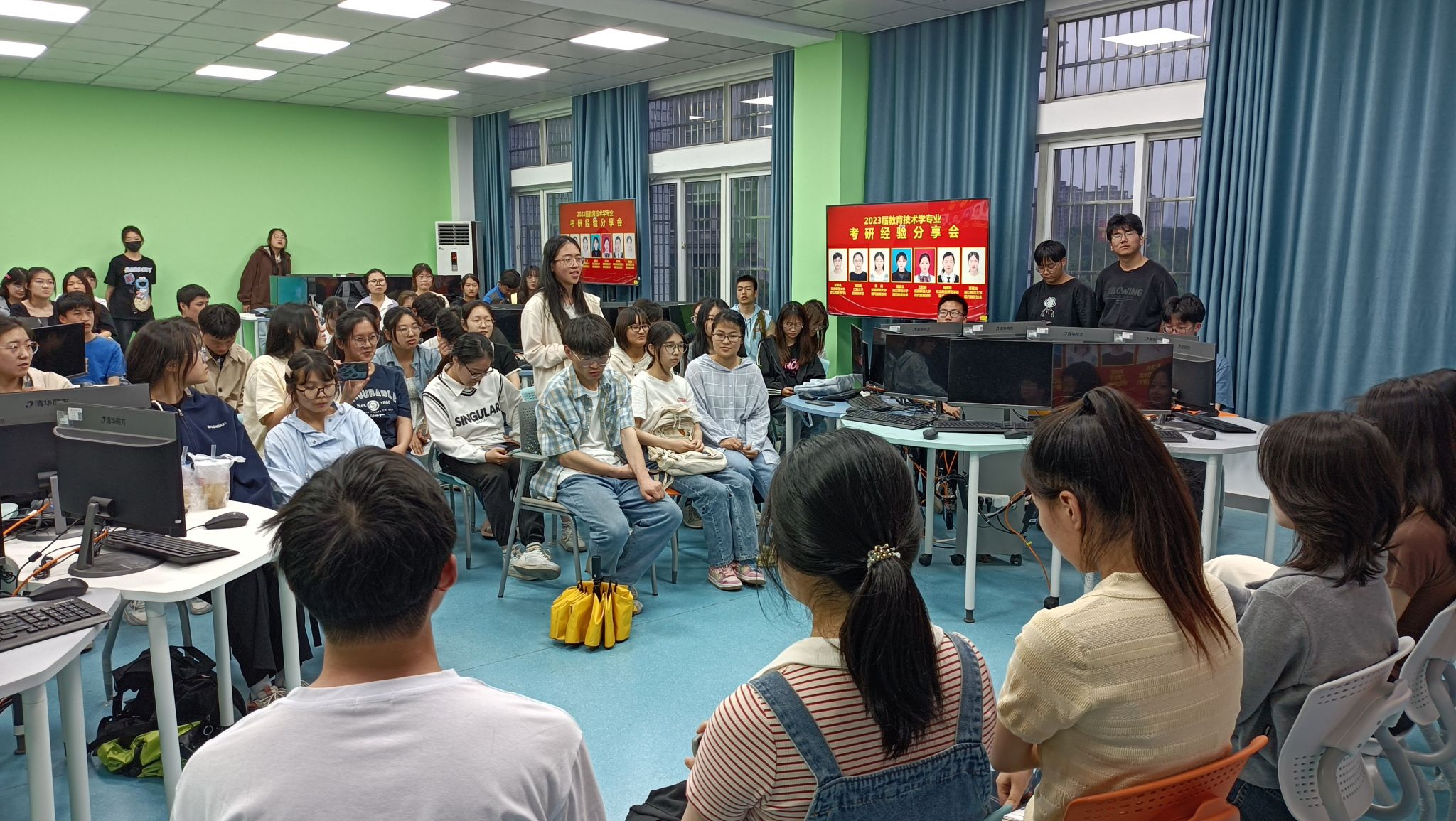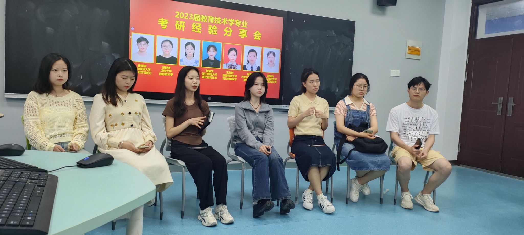4月21日,Beat365官网教育技术系在D206教室举行考研经验分享交流会。会议邀请2019级教育技术学专业七名拟录取研究生的同学作考研经验分享,活动吸引了2020级、2021级、2022级共70余名学生参与。活动由韦伟老师主持。
