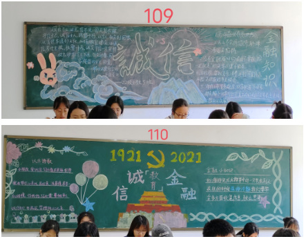 学院在做好资助常规性工作的基础上,组织各班级以黑板报形式普及诚信教育和金融知识教育相关知识。各班广泛查阅资料,搜集整理素材,集思广益、认真创作,用五颜六色的黑板报表达自己对党和国家的感恩,对自立自强、诚实守信的理解,文字内容丰富,排版有条有序。在详细介绍国家对学生各项资助政策的同时,展现了学生在诚信中自强不息立志成才、敢于担当的精神风貌。
