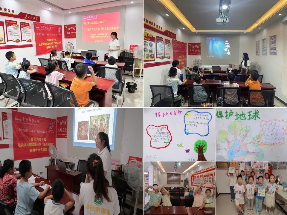 为践行绿色环保生态理念,铸就青山绿水美好家园,7月3日-9日,Beat365官方网站教师教育学院研究生“绿色未来家”教育关爱实践团在安庆市迎江区程家墩社区开展为期7天的暑期“三下乡”活动,为社区提供青少年儿童托管公益服务。