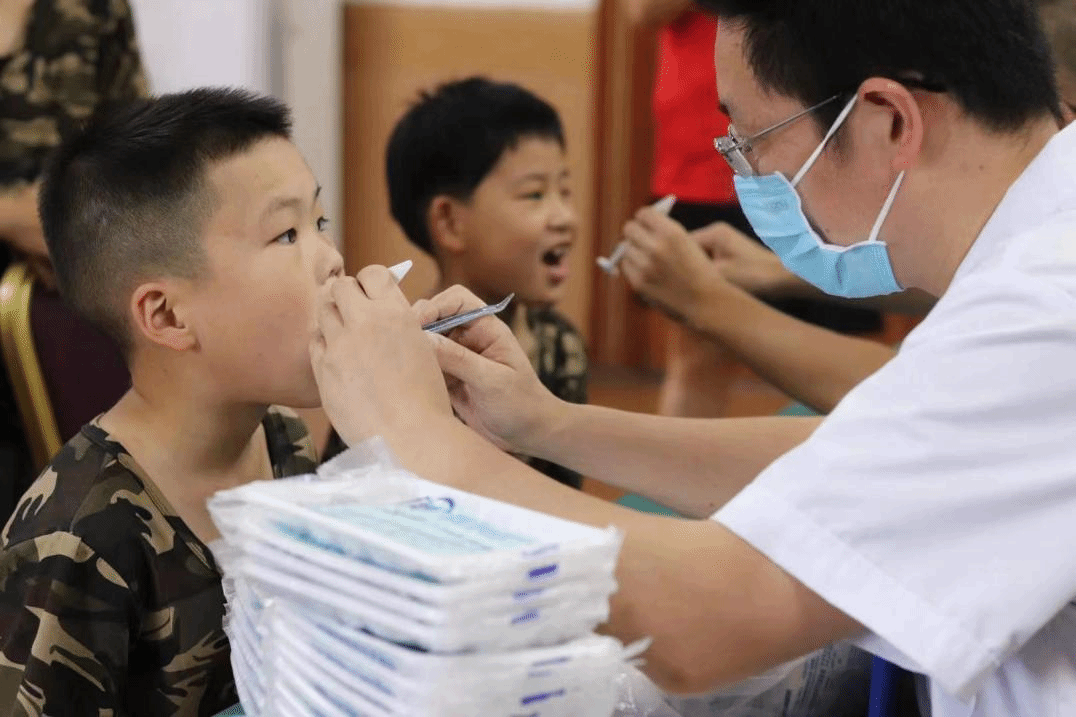 宣讲结束后,方主任与同行的医生在团队成员的帮助下带领同学们有序排队,给同学们做了口腔检查。他们通过温馨交流的方式来缓解同学们的紧张情绪,并根据的口腔情况给予了相应建议。