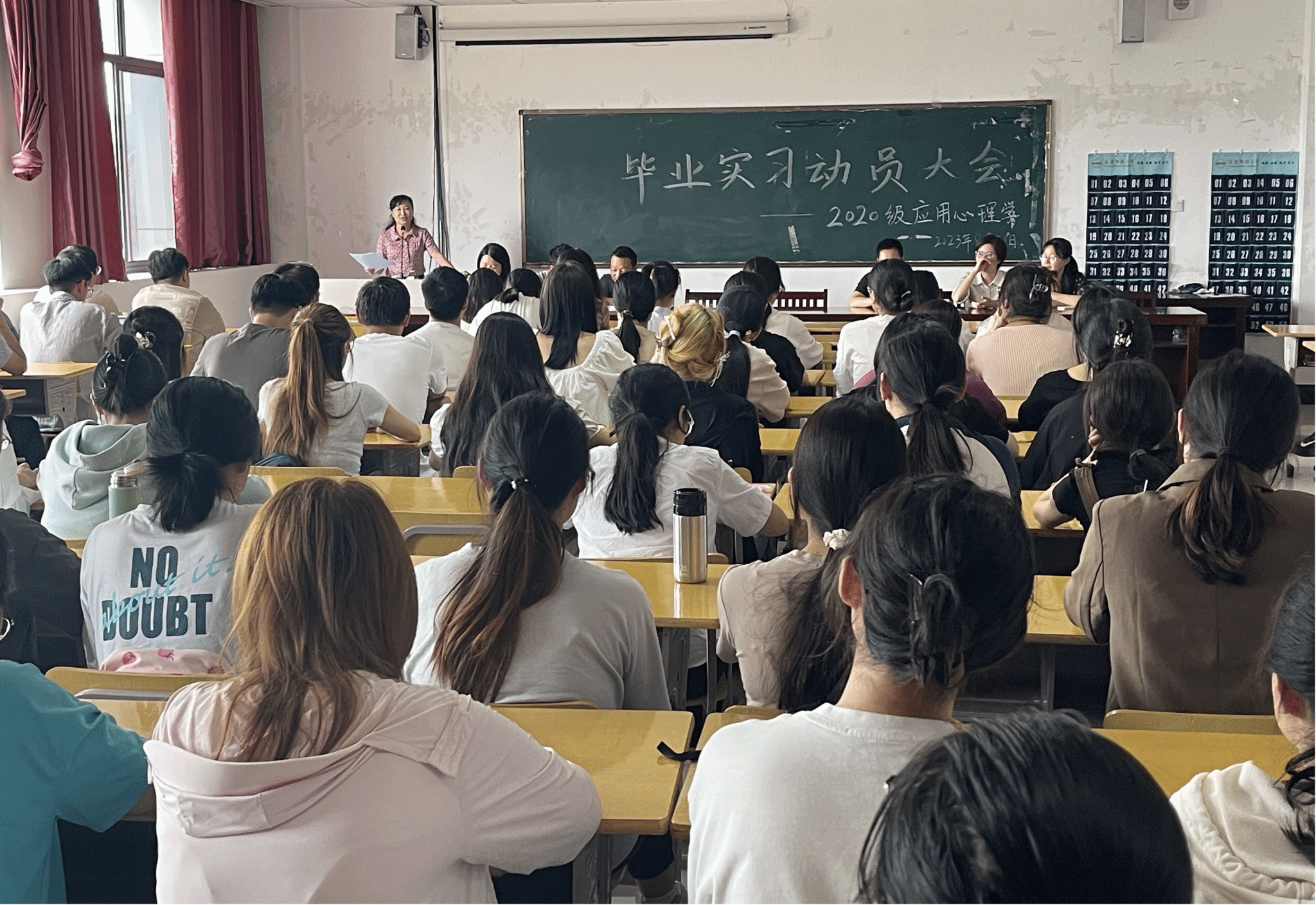 为促进应用心理学2024届毕业生实习工作的顺利开展,2023年8月30日下午,教师教育学院应用心理学专业全体师生召开了毕业生实习动员会,执行院长吴云助与专业负责人宋志英教授现场指导。辅导员汪洋洋老师主持动员会。