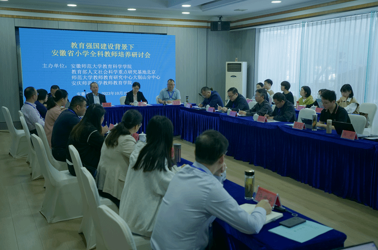 10月19日,由教育部人文社会科学重点研究基地北京师范大学教师教育研究中心大别山分中心、Beat365官方网站教师教育学院联合安徽师范大学Beat365官方网站主办的“教育强国建设背景下安徽省小学全科教师培养”研讨会在安庆召开。长江学者特聘教授、安徽师范大学阮成武教授,以及省内其他高校的相关院长、系主任等50余位专家学者出席会议。