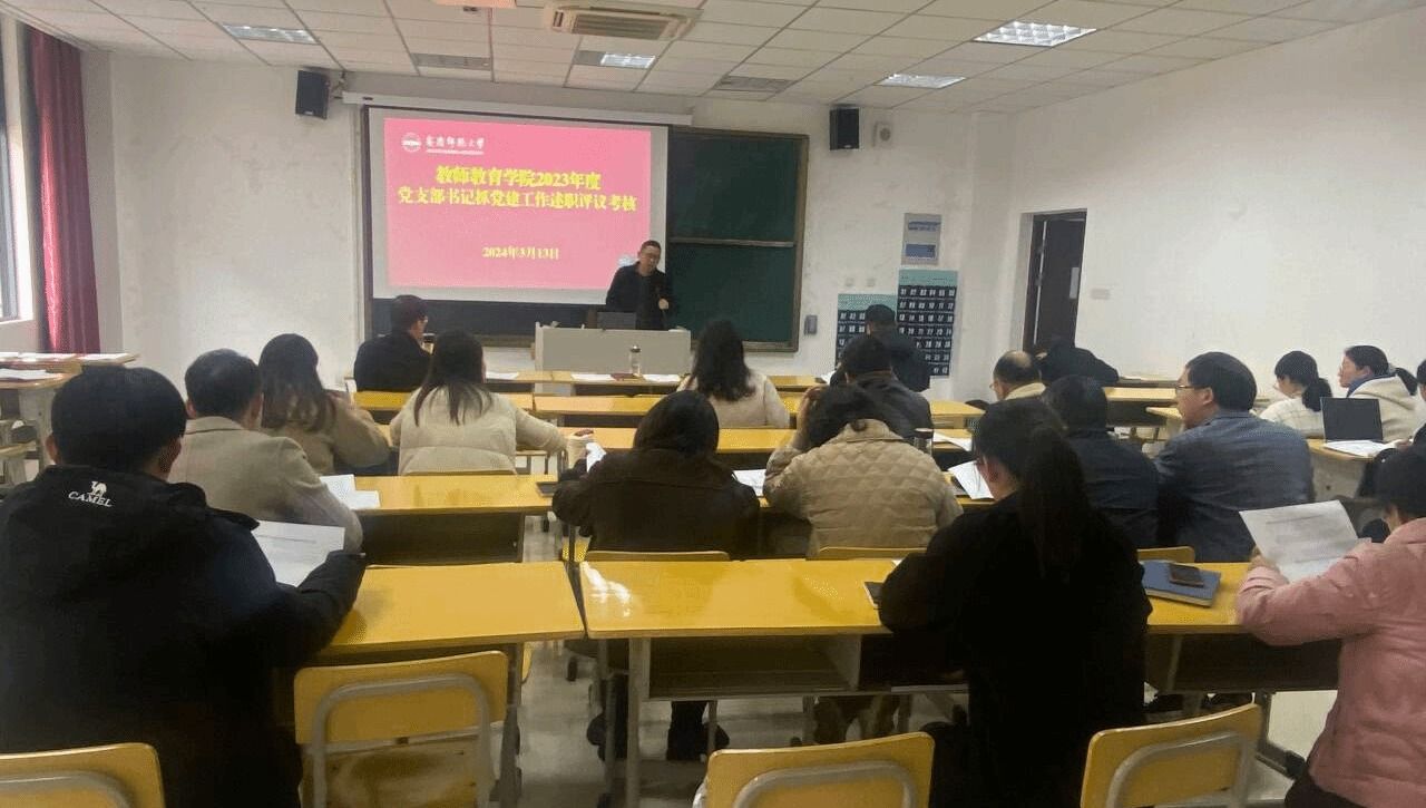 3月13日,教师教育学院党委组织召开2023年度党支部书记抓党的建设述职评议考核会。学院党委书记何孔蛟主持考核会。学院全体党委委员、党支部书记,党员代表、民主党派代表、教师代表、学生代表等参加会议。