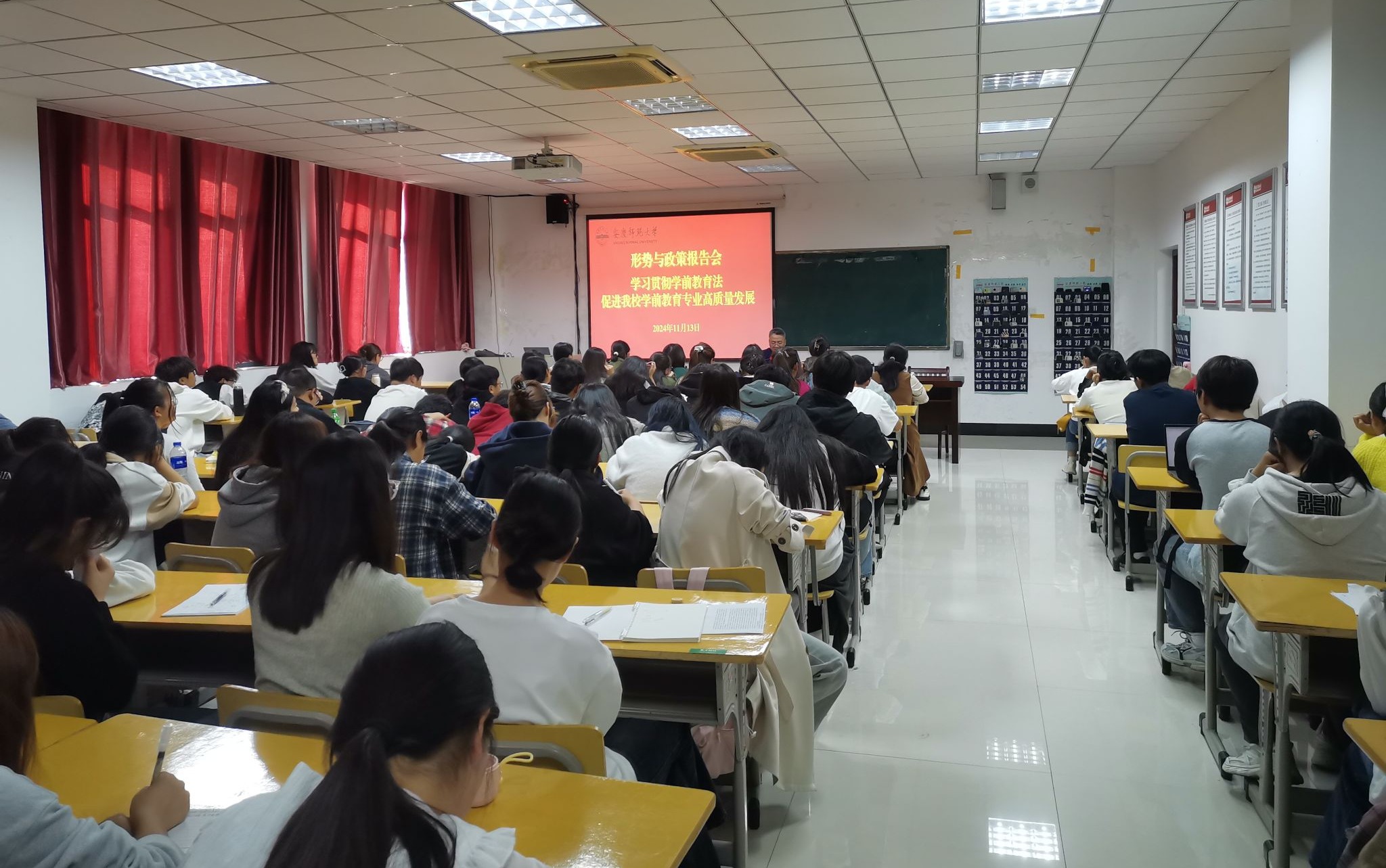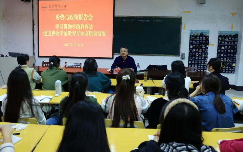 为深入学习贯彻党的二十大和二十届二中、三中全会精神,贯彻落实习近平总书记关于教育的重要论述和全国教育大会精神,学习宣传学前教育法,推动学前教育专业认证专家反馈问题整改工作,11月13日下午,校党委书记李福华为Beat365官网师生作《学习贯彻学前教育法,促进我校学前教育专业高质量发展》的形势与政策报告。