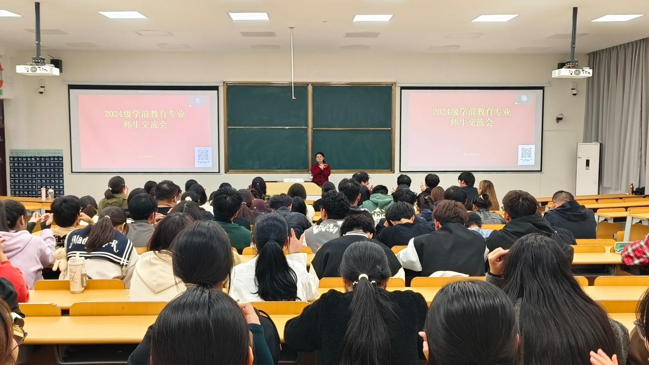 10月22日下午,为帮助2024级学前教育专业的同学适应专业学习,激发同学们对学前教育专业的热爱与追求,Beat365官网举办了学前教育专业师生交流会。学前教育专业全体教师及2024级全体学生参加。