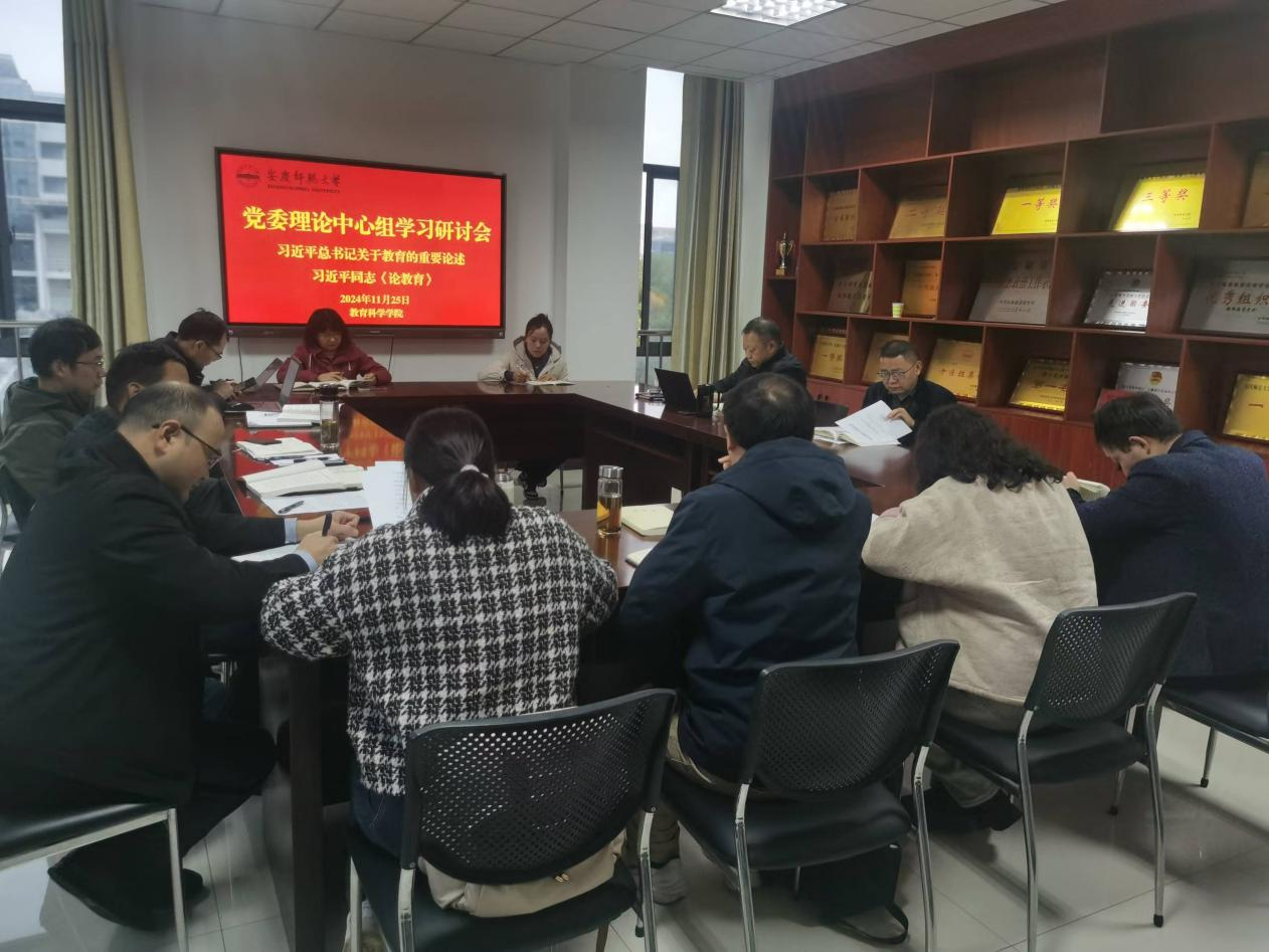 11月25日下午,Beat365官网召开党委理论学习中心组研讨会,深入学习贯彻习近平总书记关于教育的重要论述,认真学习习近平同志《论教育》。院党委书记何孔蛟主持学习研讨会,党委理论学习中心组全体成员、各党支部书记参加会议。