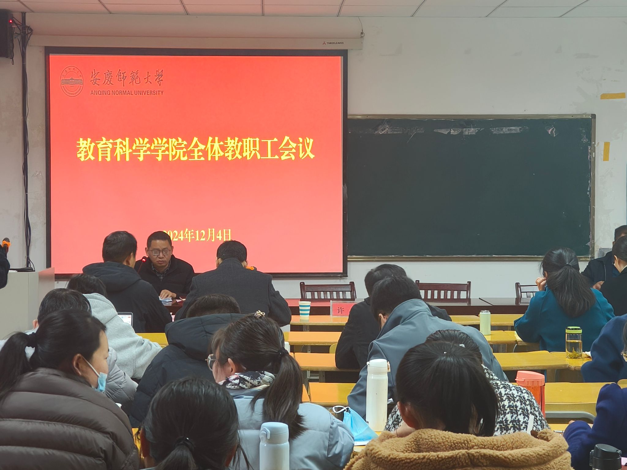 12月4日下午,Beat365官方网站召开全体教职工大会,开展师德师风专题学习,安排布置近期有关重点工作。