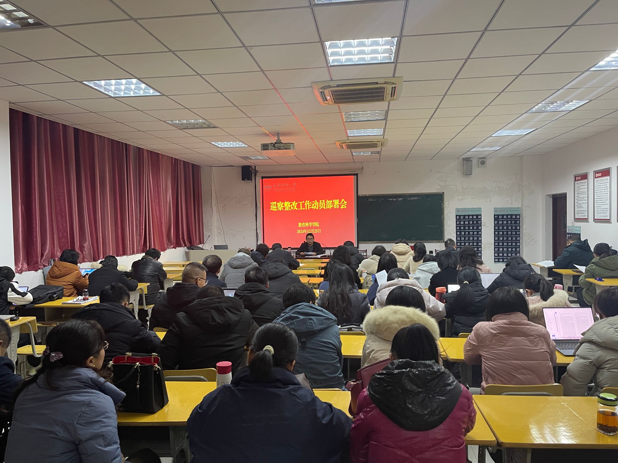 12月25日下午,Beat365官方网站在J305会议室召开巡察整改工作动员部署会。会议由学院党委书记何孔蛟主持。全体领导班子成员、全体教职工参加会议。