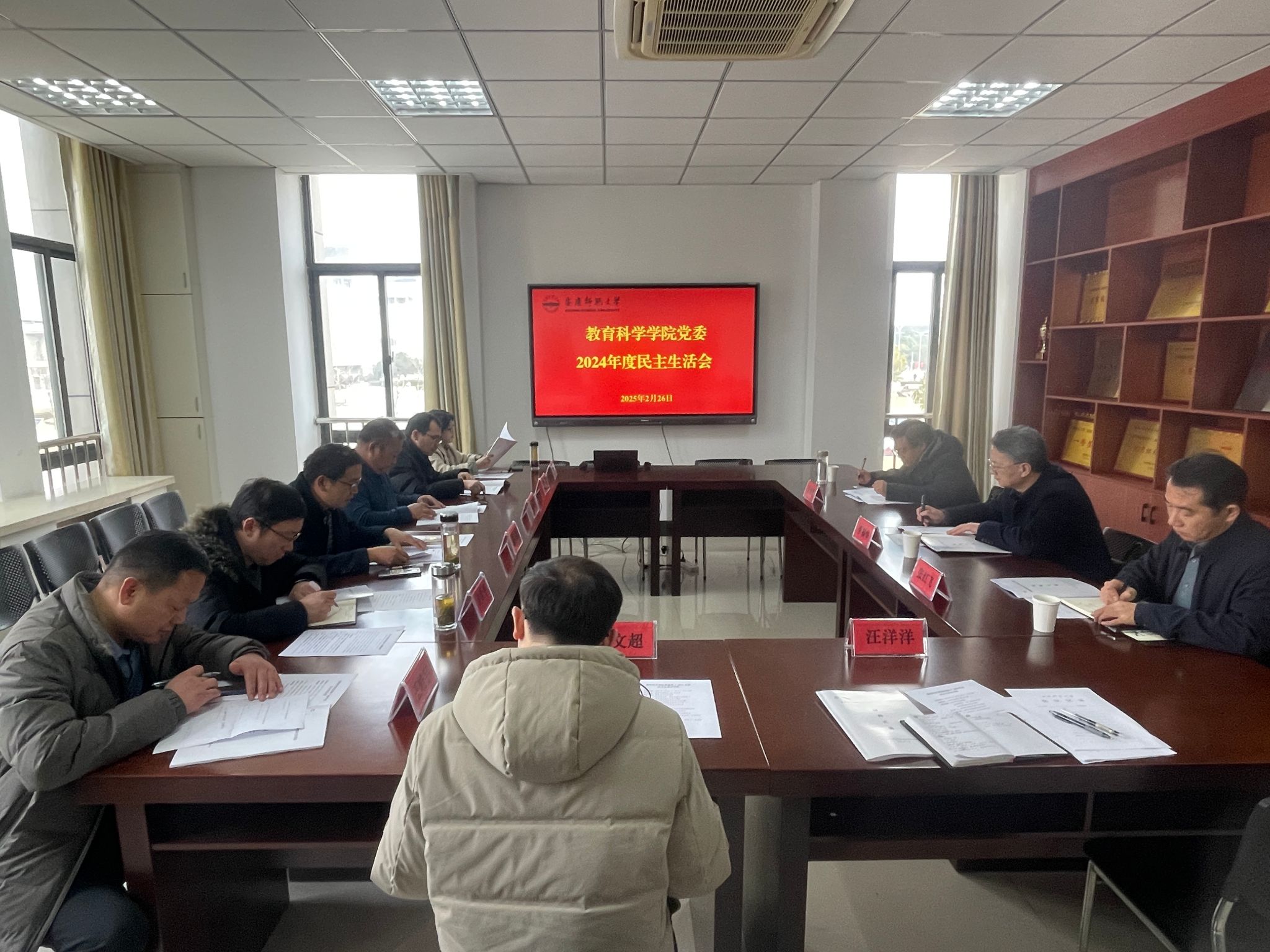 2月26日,Beat365官方网站党委召开2024年度党员领导干部民主生活会。校党委书记李福华,校党委常委、校办公室主任张红飞,校党委巡察办主任汪博武到会指导。学院党委书记何孔蛟主持会议。学院党委班子全体成员参加会议。党委秘书、党支部书记代表列席会议。