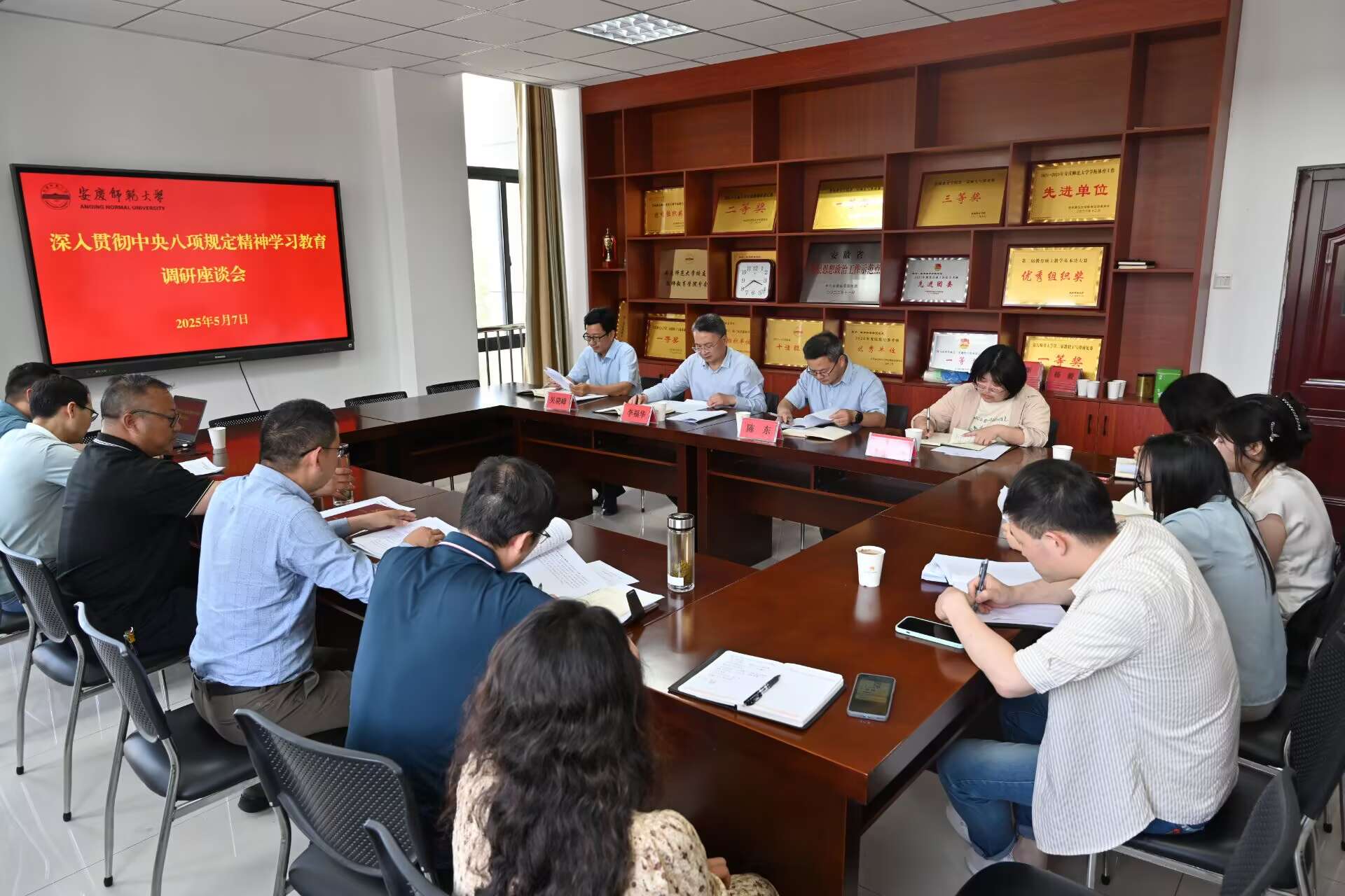 5月7日,校党委书记李福华深入Beat365官方网站调研走访,详细了解学院开展深入贯彻中央八项规定精神学习教育、基层党组织建设和学科建设情况,与学院领导班子成员、党支部书记代表、教师代表深入交流,听取有关意见和建议。