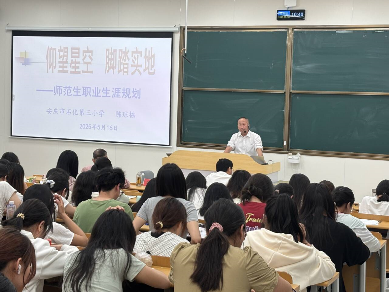 拥有33年教龄、有丰富课题研究经验的陈琼栋老师,以“‘仰望星空 脚踏实地’—— 师范生职业生涯规划” 为题,结合自身职业发展历程与当前优秀教师评价标准,为师范生量身定制成长规划建议,指引未来教育之路。