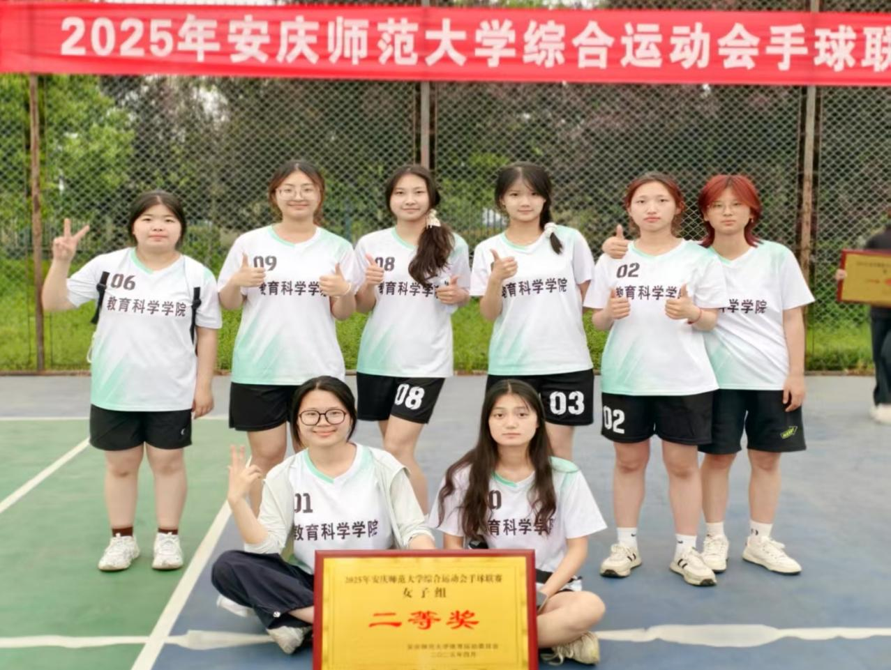 4月26日,校2025年校手球比赛落下帷幕,Beat365官方网站女子手球队凭借顽强拼搏的精神和默契的团队协作,荣获二等奖,刷新学院在手球项目上的历史成绩。