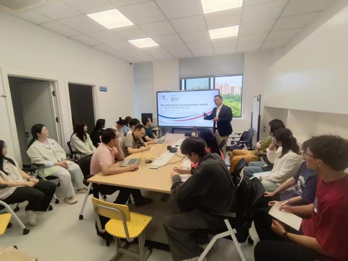 张伟鹏副教授从神经可塑性的视角出发,指出人类大脑是一个复杂的神经网络系统,通过介绍一系列在高水平学术期刊上发表的科研成果,展示了神经科学和脑科学在揭示教育和学习规律方面的重要作用,同时,张老师向大家分享了其课题组在学习科学领域的最新研究内容,强调了多学科、多模态分析方法在研究教育和学习中的重要性。他最后强调,未来研究人员将采用多模态数据采集和人工智能等前沿技术,进一步探索学习过程,为个性化学习提供有力支撑。学术讲座活动中,师生们积极参与讨论交流,现场气氛热烈。