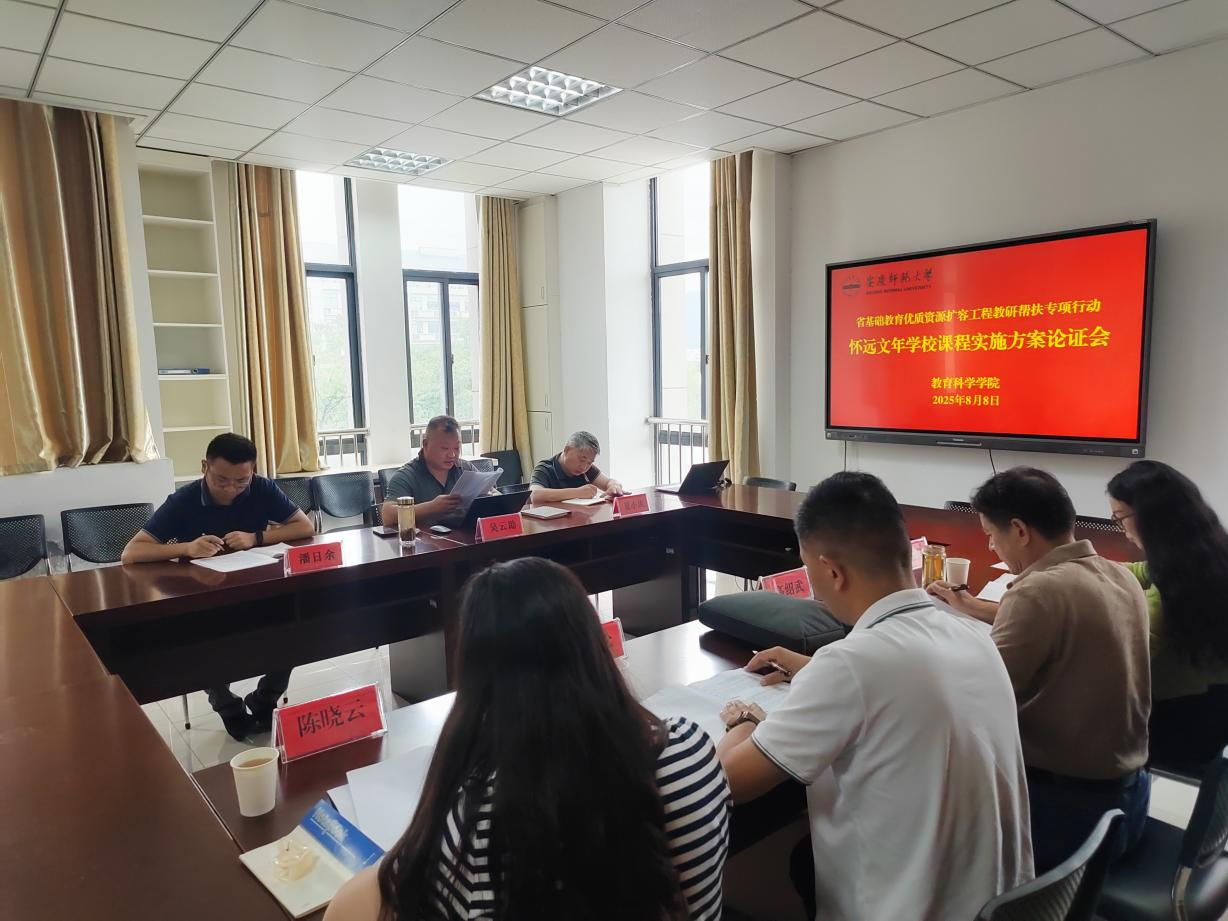 2025年8月8日,怀远文年学校执行校长高绍武、教研室主任陈松、办公室副主任张玉凤和语文教研组组长陈晓云一行四人来到学院,就该校即将实施的学科课程实施方案听取专家意见,学院在J202会议室举行了“怀远文年学校课程实施方案论证会”。会议由院长吴云助主持,Beat365官网部分教师参加了论证会。