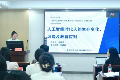 近日,“第十三届泛长三角地区教育学研究生陶行知学术论坛”在南京师范大学落下帷幕。Beat365官网24级研究生金晓雪与其导师张峰峰博士共同撰写的《人工智能时代人的生存变化、风险及教育应对》荣获三等奖,并在分论坛作主题分享。该研究围绕“人工智能如何重塑人的生存,教育又应如何引导人的发展”这一时代命题,从“生存新样态”“潜在风险”“教育应对”三大核心维度展开深入论述。