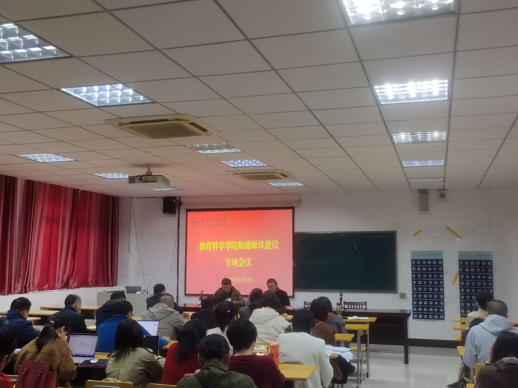 院长吴云助解读了师德师风建设有关文件精神,介绍了教师职业行为细则和违反教师职业行为的具体负面清单,对强化师德师风建设提出具体要求。一是强化思想引领,通过专题学习、师德讲堂等形式,深入学习习近平总书记关于教育的重要论述和师德典范事迹,筑牢思想根基;二是健全管理制度,完善师德考核评价机制,将师德表现与职称评定、评优评先、绩效分配等直接挂钩,形成正向激励与约束机制;三是搭建实践平台,组织开展师德师风主题实践活动,鼓励教师深入一线教育场景,在实践中锤炼师德修养。