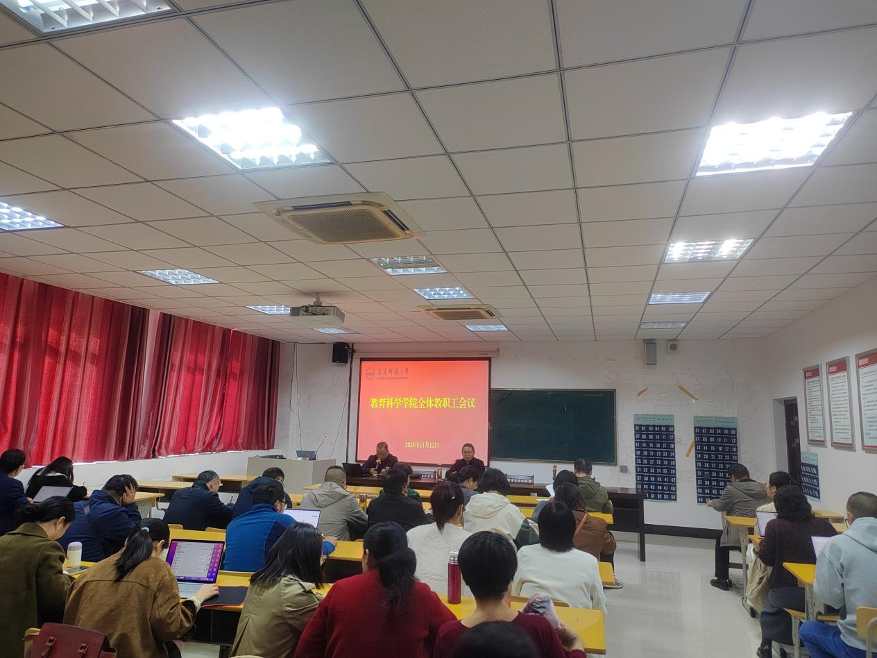 11月12日,Beat365官方网站在J305会议室召开全体教职工大会,学习宣传贯彻党的二十届四中全会精神,安排布置学院近期重点工作。会议由党委书记何孔蛟主持。