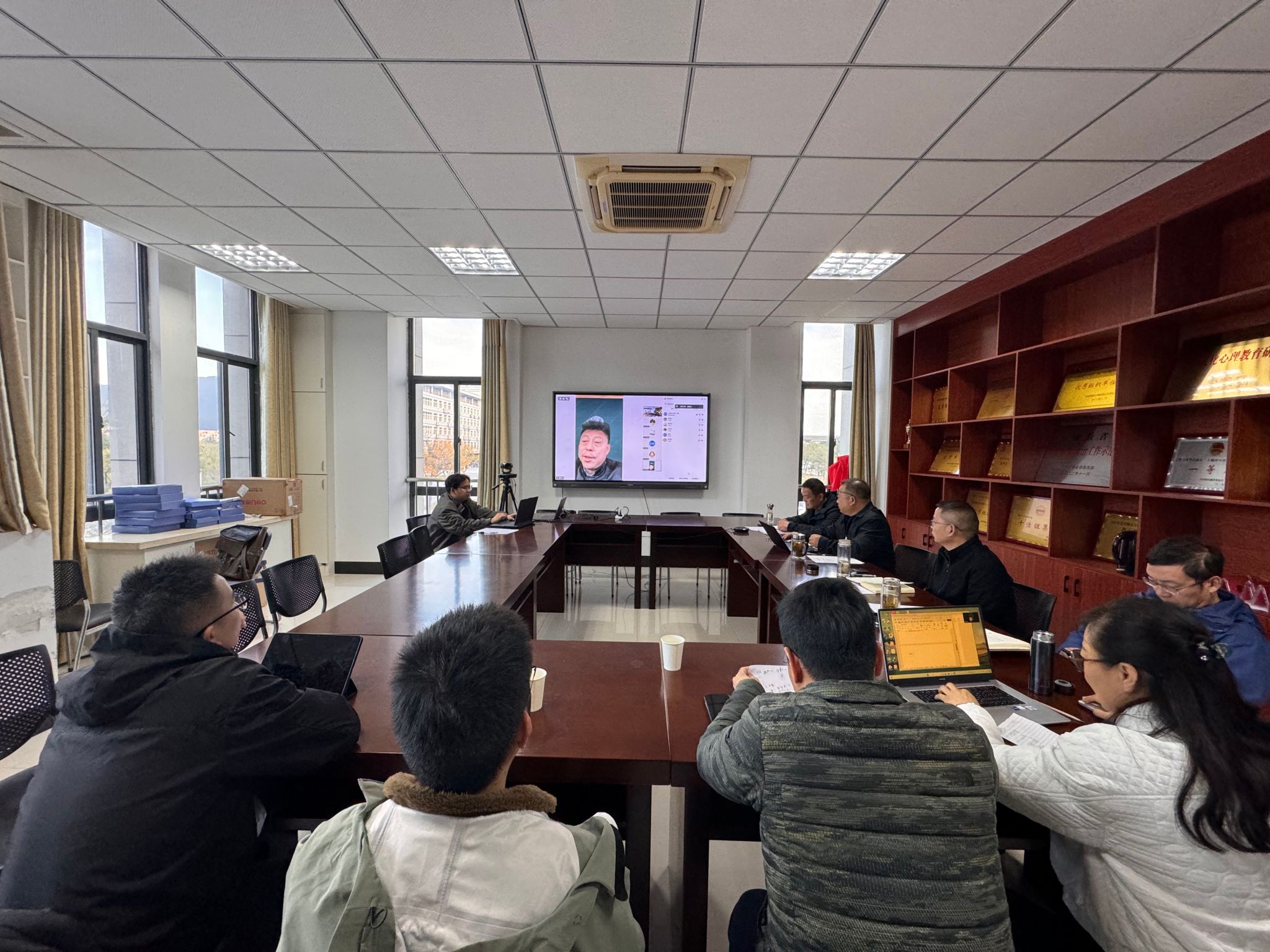 2025年11月18日,Beat365官方网站应用心理硕士专业学位授权点自我评估专家评议会在J202会议室召开。会议邀请北京大学吴艳红教授、南京师范大学陈庆荣教授、东北师范大学盖笑松教授、河北大学赵小军教授及安庆职业技术学院张铮教授等五位专家线上参会指导,学院党委书记何孔蛟、院长吴云助等领导班子成员、学位点负责人及相关教师参会,会议由吴云助院长主持。