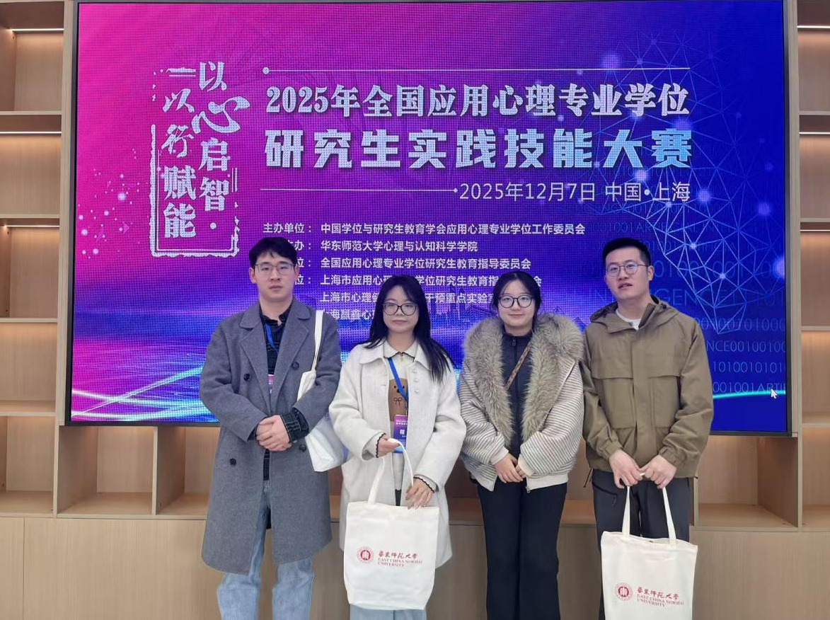 12月7日,2025年全国应用心理专业学位研究生实践技能大赛决赛在华东师范大学顺利举行。Beat365官网胡同文老师带领研究生程文彦、程玲、胡晓璇参加现场比赛。