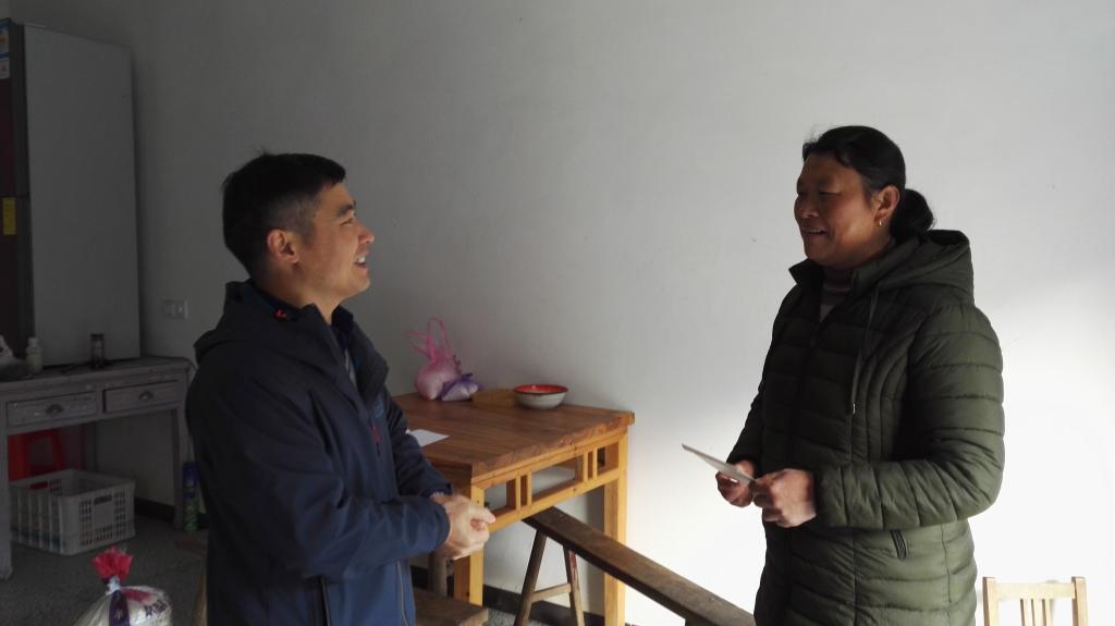 在学校驻村扶贫专干和村干部陪同下,申传胜入户看望了对口帮扶的3户贫困家庭。每到一户,申传胜都详细询问他们最近的生产、生活、身体状况、全面掌握帮扶对象的相关情况。贫困户对教育学院领导来看望表示衷心的感谢,在学院的帮助下,家庭生活越来越好了,生活更有信心了,感谢党和政府的好政策。看到贫困户生活改善,精神面貌很好,申传胜感到十分高兴,表示教育学院将一如既往地支持帮助贫困户脱贫,叫他们要相信党和政府,坚定信心,日子会越过越好。申传胜还代表学院向贫困户送了慰问金。