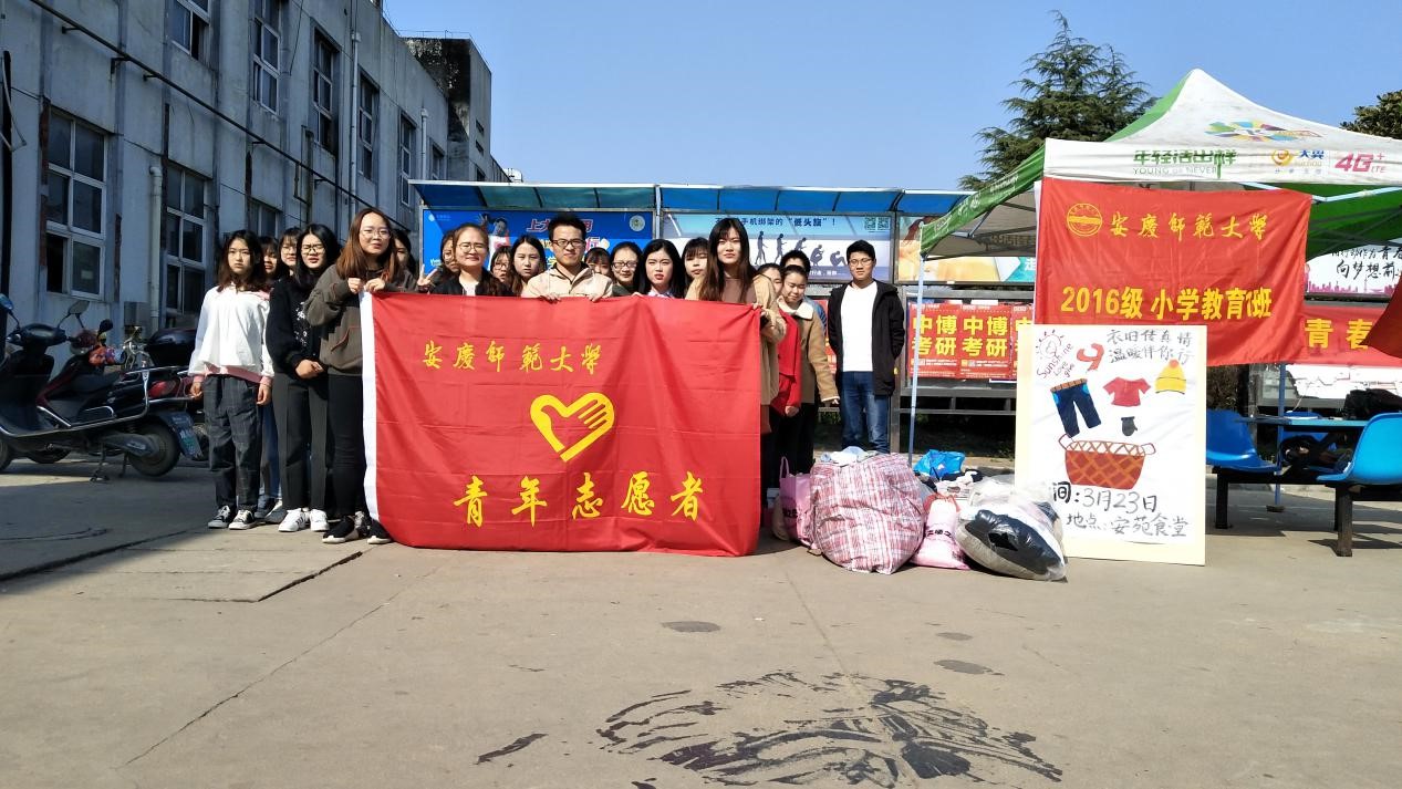3月23日,为进一步弘扬雷锋精神和“奉献、友爱、互助、进步”的志愿服务精神,以实际行动书写新时代的雷锋故事。Beat365官方网站教育学院2016级小学教育1班团支部与学校大学生青年志愿者协会协同合作,在安苑外开展爱心捐赠活动。