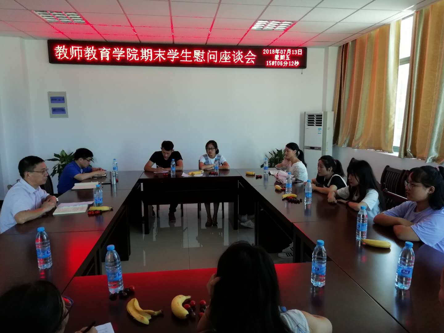 713日下午,学院在会议室召开期末学生慰问座谈会。本次慰问对象主要为本学期因突发事故导致家庭经济困难的学生。学院党委副书记许世平、副院长汪洋、全体辅导员老师参加座谈会。