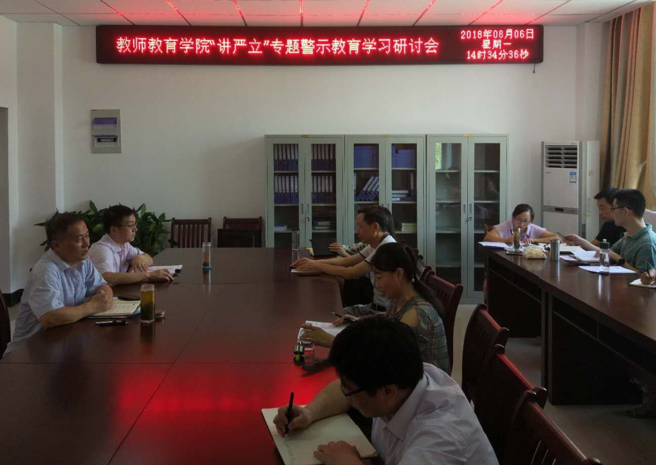 根据校党委关于“讲忠诚、严纪律、立政德”专题警示教育活动安排要求,86日下午,学院召开党委理论学习中心组专题学习研讨会。院全体党委委员参加会议,支部书记、全体办公室行政人员列席会议,会议由学院党委书记曹长德主持。