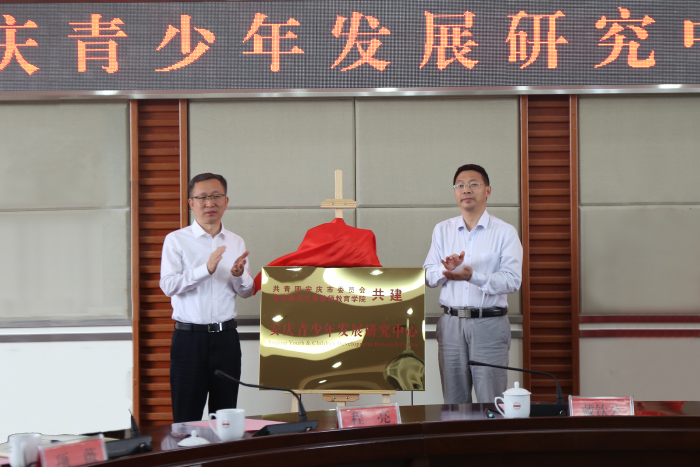 5月29日上午,安庆青少年发展研究中心成立大会暨揭牌仪式在我校龙山校区举行。校党委常委、副校长汪时珍,安庆市委常委、副市长戴钦公出席会议,共同为研究中心揭牌。共青团安庆市委班子成员、教师教育学院班子成员,校办公室、科研处、团委等有关部门负责同志和师生代表参加了揭牌仪式。