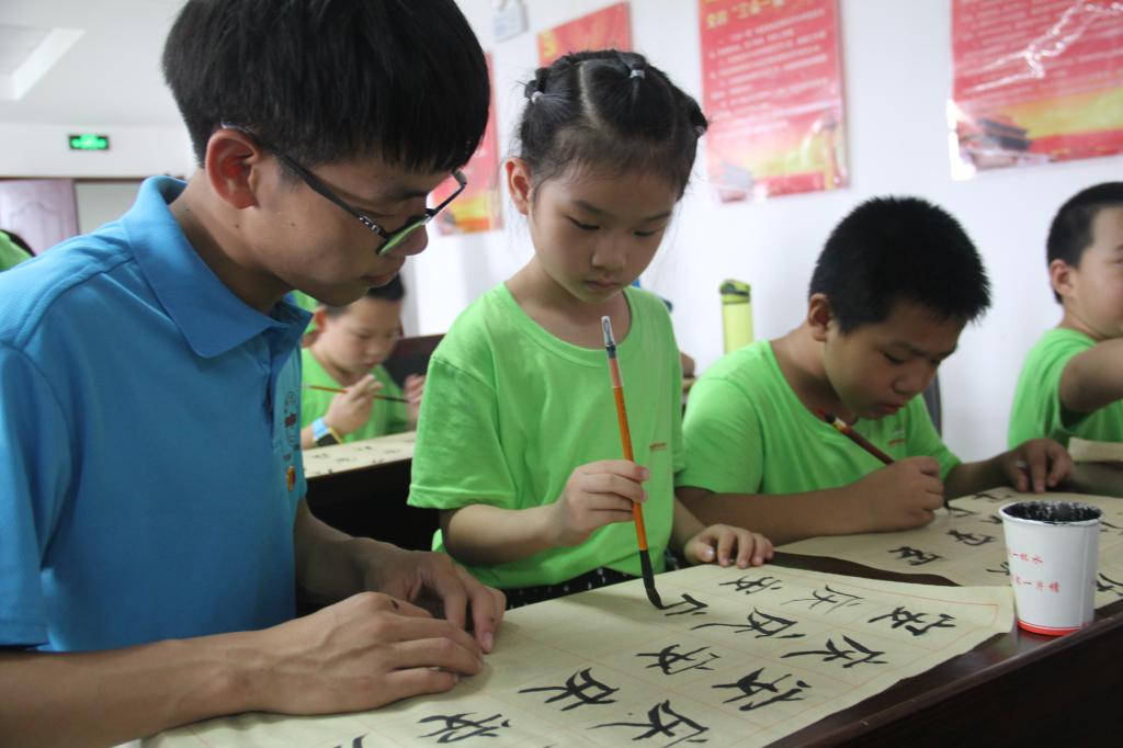 书法是我们民族之瑰宝,志愿者们希望通过书法课学习可以很好地启蒙学生,向孩子们宣传美学思想,帮助孩子们系好人生的第一粒纽扣。(文/夏庆香 图/卞士曜)