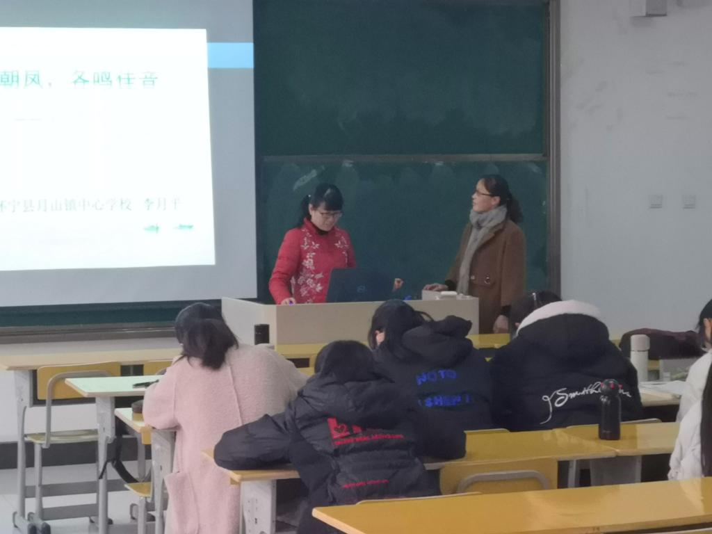 2019年12月14号上午九点在J楼102教室,安徽乡村教师首席名师、高级教师李月平老师做客教师教育学院2019级小学教育专业《小学教育学》课堂,为学生做《百鸟朝凤,各鸣佳音:小学语文阅读教学对话教学模式》主题讲座。