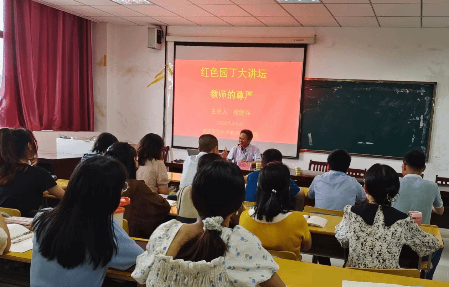 5月30日下午,山东师范大学教育学部部长、教授、博士生导师徐继存来院作“教师的尊严”学术报告,会议由副院长诸园主持,教师教育学院全体硕士研究生及部分本科生、教师现场聆听。