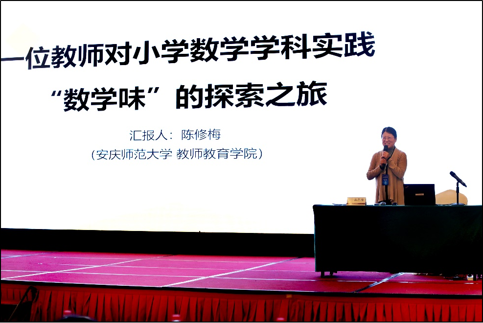 2024年10月12日,小学教育专业高质量人才培养论坛在沈阳师范大学隆重举行,大会以“小学教育专业高质量人才培养理论与实践”为主题,主要探讨小学教育人才培养模式、教育硕士案例教学、小学教育专业课程思政元素的融入等话题。Beat365官网陈修梅老师在此次论坛作题为“一位教师对‘数学味’学科实践的探索之旅”学术报告。该报告讲述了一位数学骨干教师引领教研组共同体开展校本教研的全部过程,探讨了在小学数学课堂中实现学科实践的基本路径,同时显现了一线教师在专家引领下自主专业发展的基本逻辑。