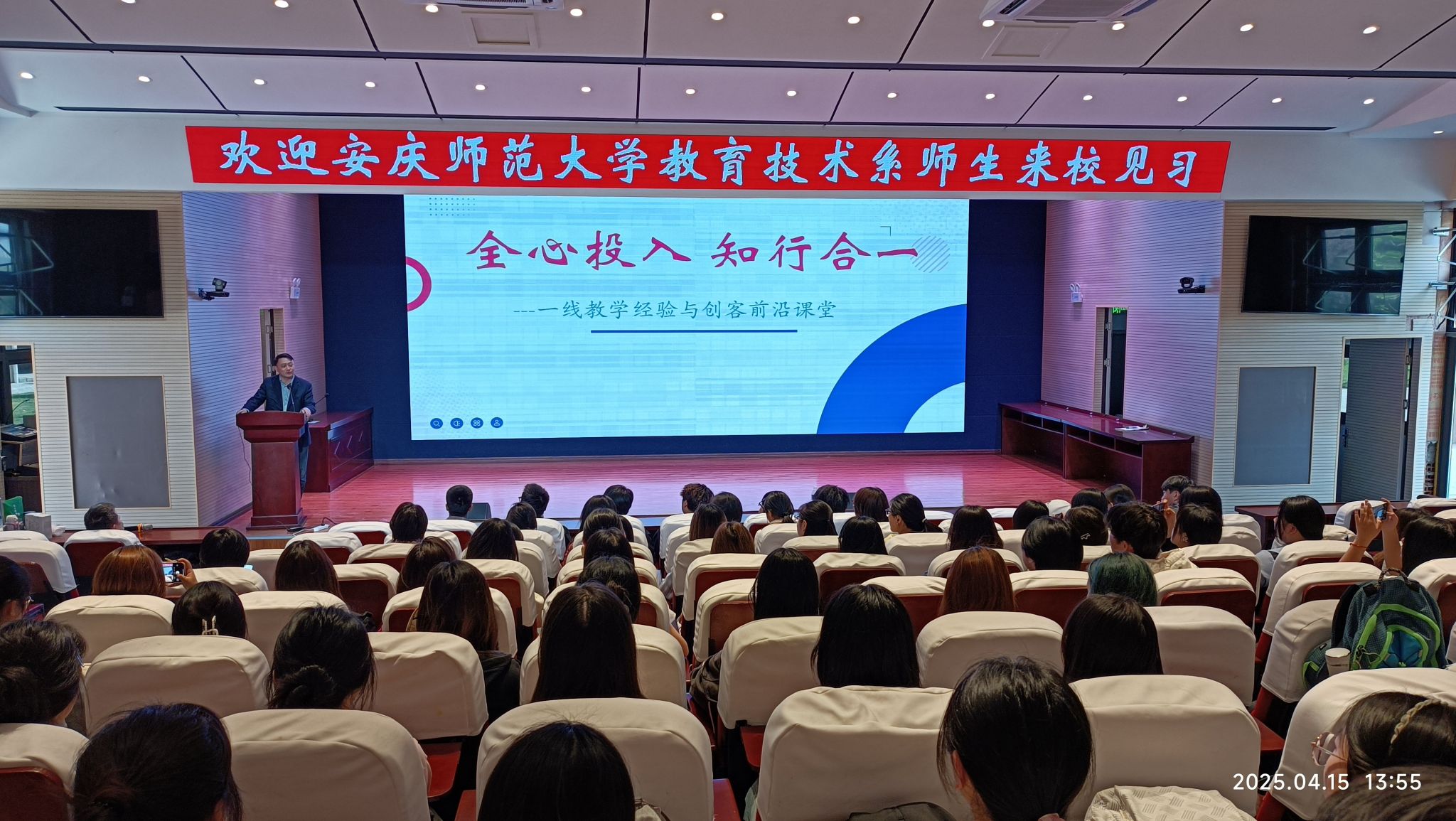 4月15日,教育技术学专业2022级、2023级学生分别在指导教师万士全、杜杉杉、朱斌彬、查怀志、韦伟等带领下,赴安庆市延乔中学(十四中)开展教育研学活动。一行80余人受到延乔中学副校长余斌,信息技术学科教师丁象、王志萍的热烈欢迎。