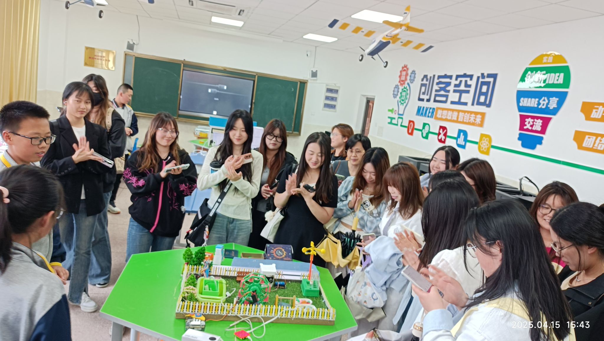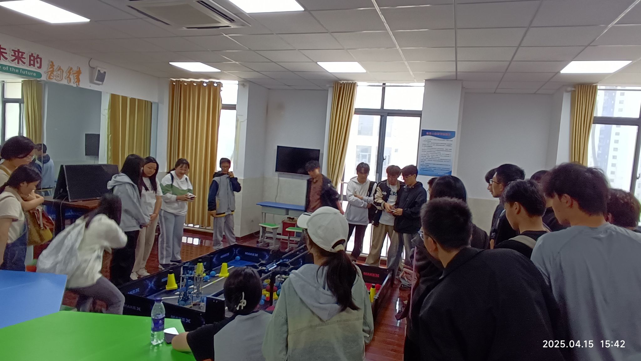 课程结束后,同学们分两组先后参观了十四中学生的科技创新作品。展品丰富多样,令人目不暇接。智能微型图书馆通过面部识别与二维码技术,支持学生线上查阅书籍信息,实现了便捷的借还书流程。智能储物柜则充分考虑学生需求,融合智能语音与保温系统,实用性与科技感兼备。构思精巧的微型花园种地系统则展现了创意与技术结合的魅力。此外,巡线小车能精准寻球,智能小车高效完成任务,其对抗性玩法更是趣味十足。在竹老师的详细介绍下,同学们深入了解了这些作品背后的技术原理,知晓了团队成员如何分工协作攻克难题。大家真切体会到科技创新的无限乐趣,也认识到技术能力和团队协作对作品成功的关键作用,进一步启发了创造性思维。