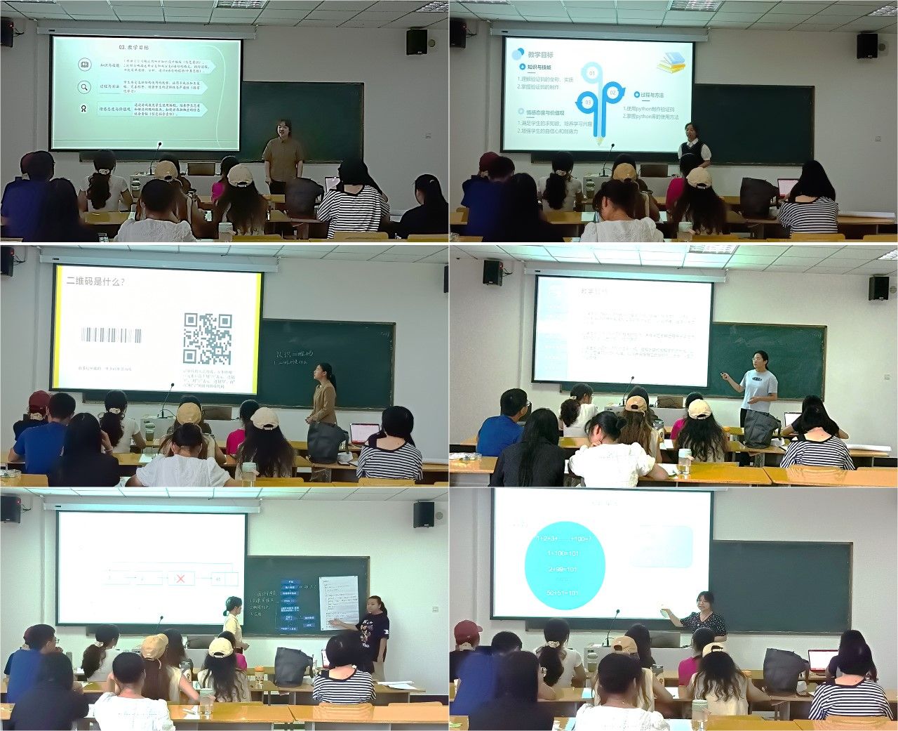 比赛严格按照校赛、省赛规则,分说课(5分钟)、讲课(15分钟)两个环节依次开展。6名选手分别以“选择结构”“循环链表”“认识二维码”“验证码”“For循环”等为主题,用故事、游戏、问题创设情境,从而引出课程内容;通过层层剖析,逐步深入,较好地讲解了教学重难点,基本实现了围绕核心素养设定的教学目标,可谓是“课”有千秋。