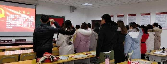 201912日下午,学生教育综合党支部在J305教室开展党日活动——党员宣誓大会。支部书记唐凤霞老师以及全体学生党员到场参加大会,会议由支部副书记刘文丽老师主持。