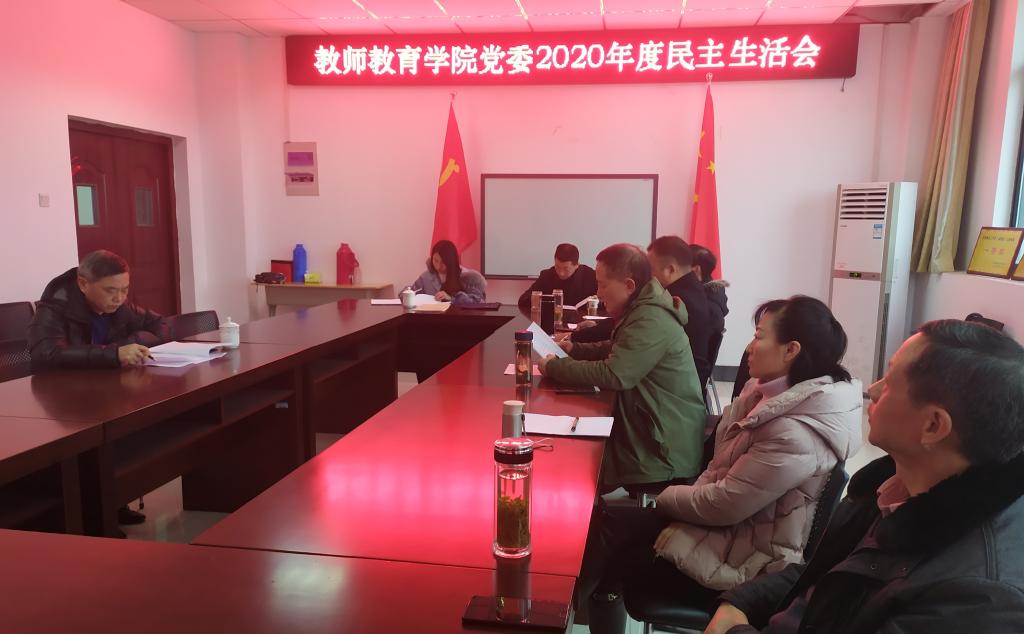 1月27日下午,教师教育学院学院会议室召开2020年度领导班子民主生活会。会议由党委书记曹长德主持,全体党委委员参加,校党委常委、组织部部长余精华到会指导。